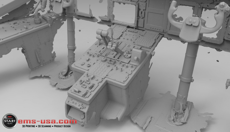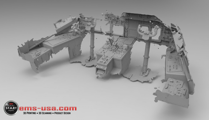 EMS has been providing dimensional measurement technologies and 3d scanning and CAD services to the simulation and trainer industry for years. During that time, the simulation and trainer market has grown exponentially.For every aircraft, fighting vehicle, tank, weapons system and other armed forces and civilian systems, personnel must be trained to operate them safely and correctly. In many cases, the original CAD doesn’t exist or cannot be accessed to build an accurate simulator. 3D Scanning allows these original vehicles or aircraft to be captured in 3D and then modified as needed to work in a trainer or simulator. In addition, smaller parts such as flight control grips, duct work, brackets, knobs and other items can be 3D printed in robust materials to be used in the actual simulator or trainer.
